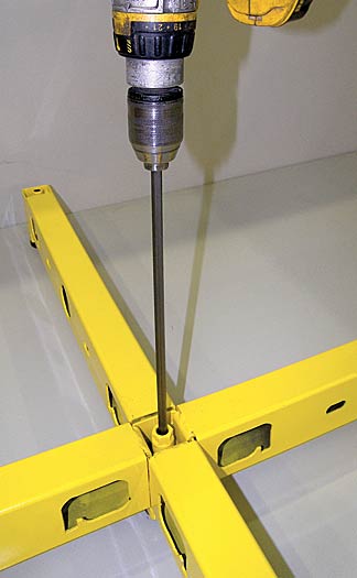 Leveling can be completed before or after the top panels are mounted, using only a cordless drill.